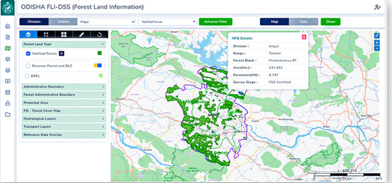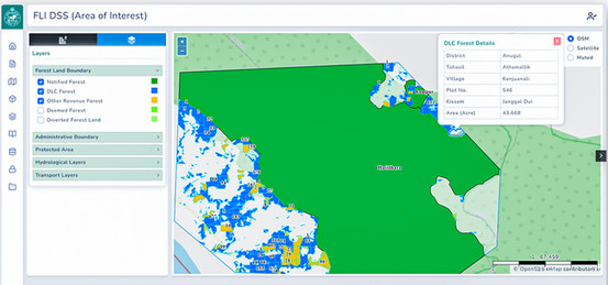 Based on the data infrastructure framework, the system utilizes geospatial database of precisely mapped, geo-referenced forest boundaries integrated with other reference layers, such as: protected areas, migratory paths of wildlife, administrative boundaries, forest working plans, forest cover maps of different time period, topographic maps and revenue cadastral. An analytical dashboard provides region wise details of different kinds of notified, recorded, and deemed forestlands.