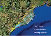 The assignment included mapping roads, settlements, rivers, and drainage systems below 20 m ground elevation. Modeling was conducted to compute probable surge height due to the combined effect of rain and high tide.